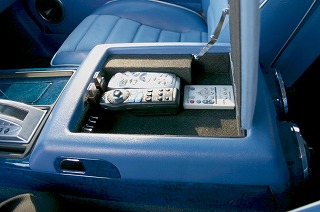 奥行きあるディープリムに、放射状に広がるフィンタイプディッシュを組み合わせたデザインは、 H2と抜群の相性。互いにシンプルかつストレートなデザインだからこそ実現したスタイリングと いえよう。使われたクローム&ビレットパーツはSMAが中心である。 圧巻だったのはインテリア。ドアを開け放った瞬間に飛び込んできたのは、前面に広がる 鮮烈なブルーの世界だ。マテリアルはレザーとアルカンターラで、後者のパートは淡い スカイブルー調だ。また各パネルなどで効果的なアクセントになっている柄は ブルーチェスナットウッドだ。